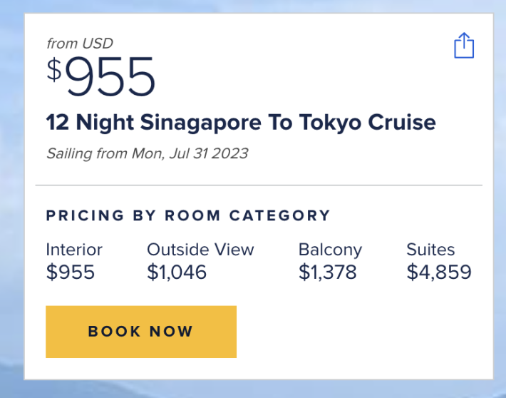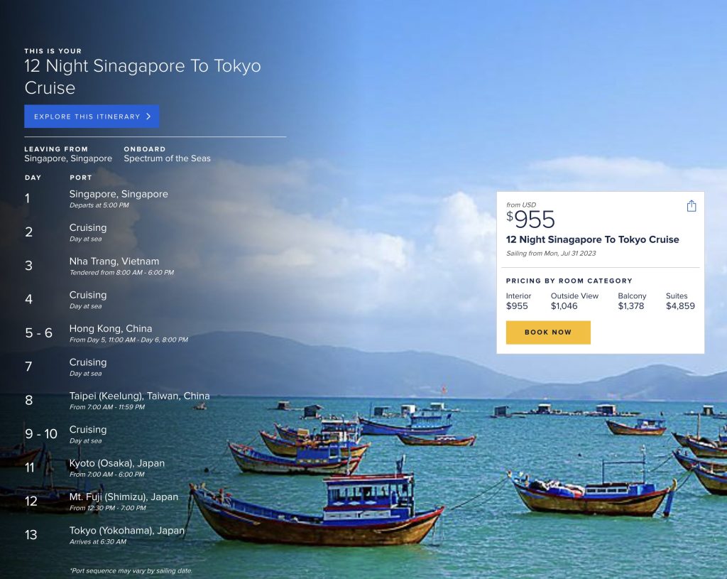 (此爲美國官網價格,目前Royal Caribbean新加坡官網尚未開放預訂)