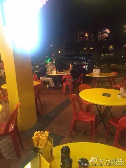 昨晚微博網友 @丁士心月月鳥 爆料:姚明在馬裏是他吃飯!@新加坡眼