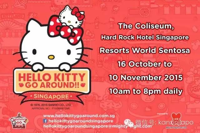 Hello Kitty在新加坡有多紅大家都知道了,2013年在霧霾汙染PSI 400時候大家都能排出幾千米的長隊,今年SG50也是出了各種各樣的Kitty周邊全部各種被搶購一空……這個10月新加坡的Kitty迷有福利,10月16日開始,新加坡將迎來史上最盛大的Hello Kitty Go Around主題嘉年華,屆時萌萌哒Hello Kitty和Sanrio好朋友們都會來到新加坡與大家見面喲!