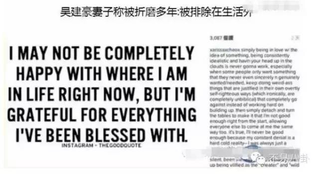 最近吳建豪和他的新加坡豪門老婆又被爆離婚,但這已經被傳好幾次了。這次被傳,是因爲吳建豪老婆石貞善在facebook上分享了一段話,大概內容就是“翻開新頁,舊章必結,告訴自己絕不重蹈覆轍”,這段話引得大家對猜測他們的婚姻是不是亮起來紅燈。
