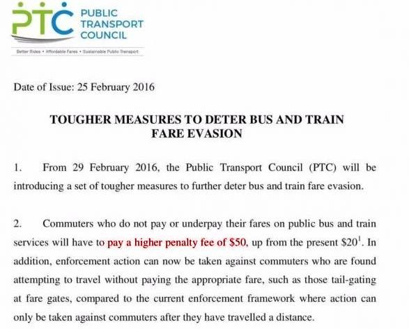 就在今年2月,新加坡公共交通理事會宣布,對那些“偷吃”車資的人,將推出更爲嚴厲的罰款措施!沒有支付或少付車資的乘客,將面臨罰款50元,比之前的20元銷案罰款高出超過一倍….(點擊閱讀:在新加坡乘坐巴士和地鐵逃票,抓住了會怎麽罰?)