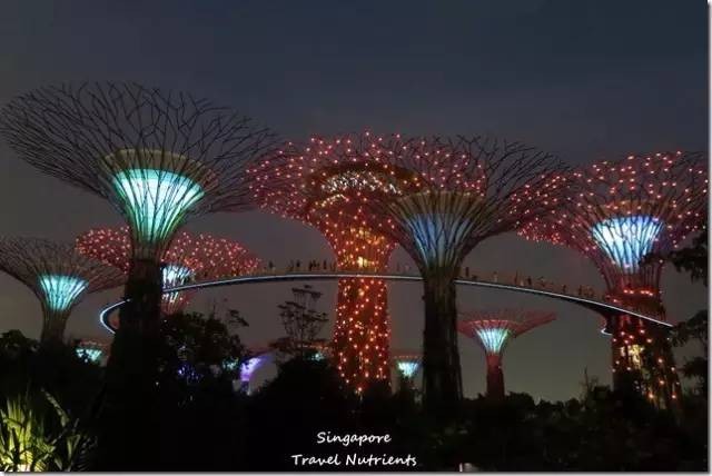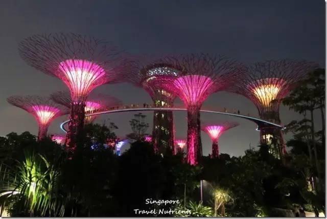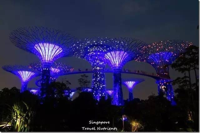 擎天大樹在白天除了高大,貌似沒什麽特點。可是到了晚上,會有兩場精心設計的燈光秀,黑暗寂靜的夜空頓時被渲染成奇幻的色彩,令人目眩神迷。