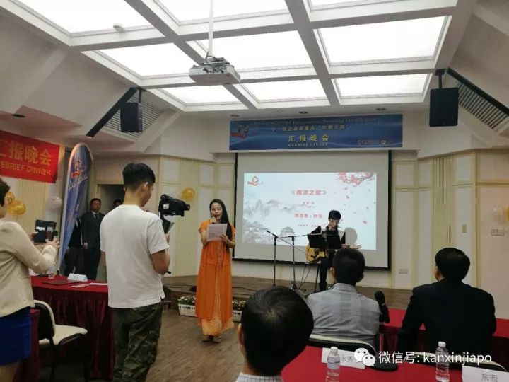 南洋公共管理研究生院院長劉宏、商學院中國項目主任吳原教授、校友事務處副主任陳健昌老師、中文系主任、華裔館館長遊俊豪老師等院、系領導和中新企業家及新加坡文化名人等一百二十人出席了彙報晚會,劉宏院長給了南洋國際俱樂部真誠的祝賀與鼓勵,新加坡作曲家協會主席郭永秀攜弟子張耀天,傾情奉獻了幾曲“南洋之歌”的名家經典詩歌吟唱,中國著名作家東西先生也出席了晚會。晚會的絲綢之路和南洋文化底蘊深厚,氣氛熱烈。