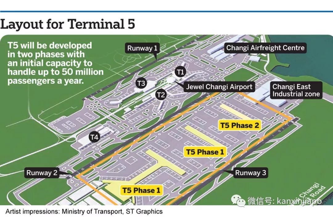 ▲T5設計圖紙,樟宜機場T5將承載5000萬人次客流量,提供多100個停機處,比現有的T1、T2、T3加起來還要大,預計在2030年左右完工。