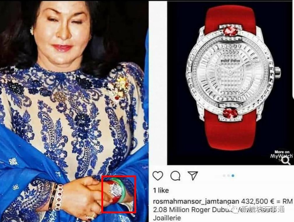 這位在納吉心目中地位崇高的“納夫人”每次出現在公衆面前總是珠光寶氣、精心打扮,她佩戴的腕表最貴的一只是要價高達約68萬9000新元的羅傑杜彼(Roger Dubuis)。