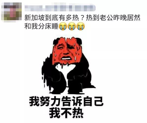 還記得6月初,我們還在吐槽新加坡熱到沒朋友,當時,有網友還在朋友圈分享了自己因爲天氣太熱跟老公分床睡的悲慘案例。