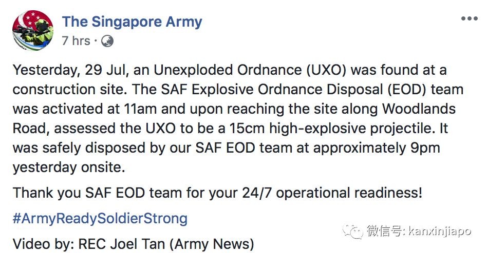 新加坡武裝部隊也在Facebook上向大家彙報了進展: