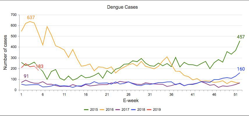 ▲新加坡曆年骨痛熱病例數對比圖 圖片來自環境局