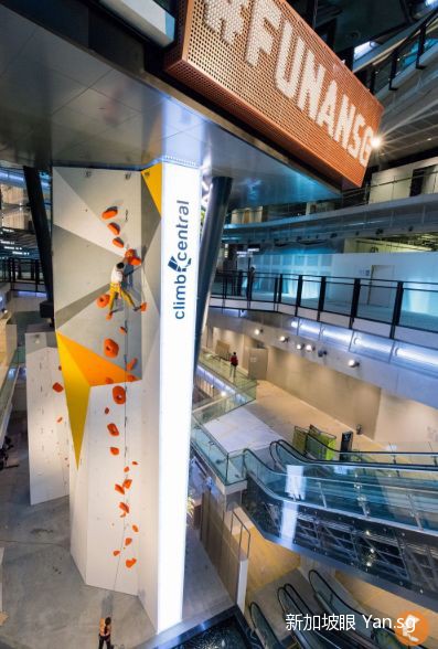 不僅如此,商場內還有一個4層樓高的室內攀岩牆,簡直就是攀岩愛好者的福音~