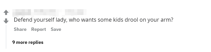有網友表示理解黑衣阿姨,畢竟誰想讓小孩子在自己手臂上流口水呢?
