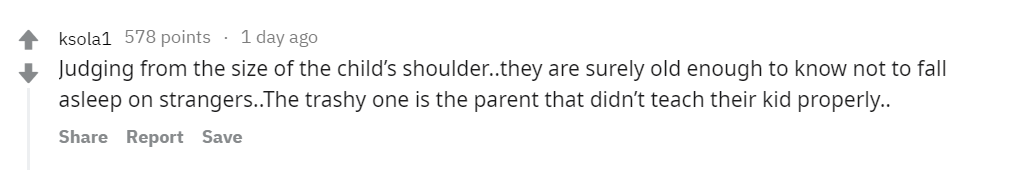 不少人覺得孩子都這麽大了,應該意識到不能睡在一個陌生人身上,孩子的父母沒有盡到教育他的責任,所以黑衣阿姨的舉動是可以被理解的。