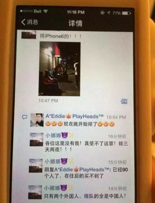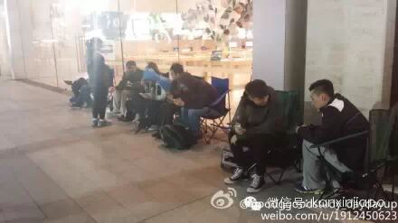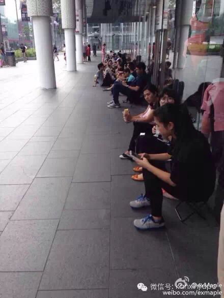 Bella:明早8點開始銷售的iPhone 6,昨天就開始有人排隊了,更狠的是那哥們自帶涼席……