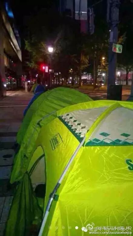 日本推特上一位名爲“app_taylor”的大學生是枚不折不扣的死忠果粉,他和小夥伴9月6號便在東京銀座蘋果門店前紮下營寨,開始排隊等待iPhone6發售……他們頂風冒雨露宿街頭卻樂在其中,還一邊看看美網公開賽,一邊收收快遞(竟然還能送到…),吃著路人給他們的方便面傻傻地等……