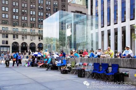 安普若-外號安校長:紐約第五大道上的蘋果專賣店前等iPhone 6的人們。(轉網上照片)