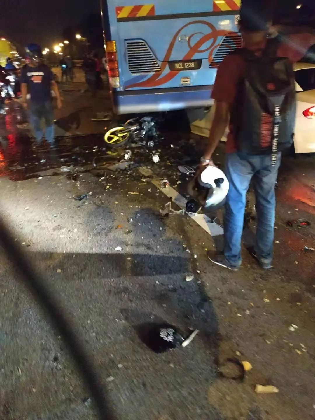這是一場四車連撞的重大交通事故,事故據說是由大巴前方摩托車與貨車相撞引起。
