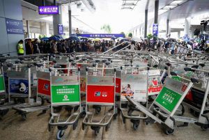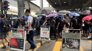 9月1日,示威者又湧入香港國際機場,阻撓來往車輛進出航班樓,導致機場的交通癱瘓,大批旅客滯留。