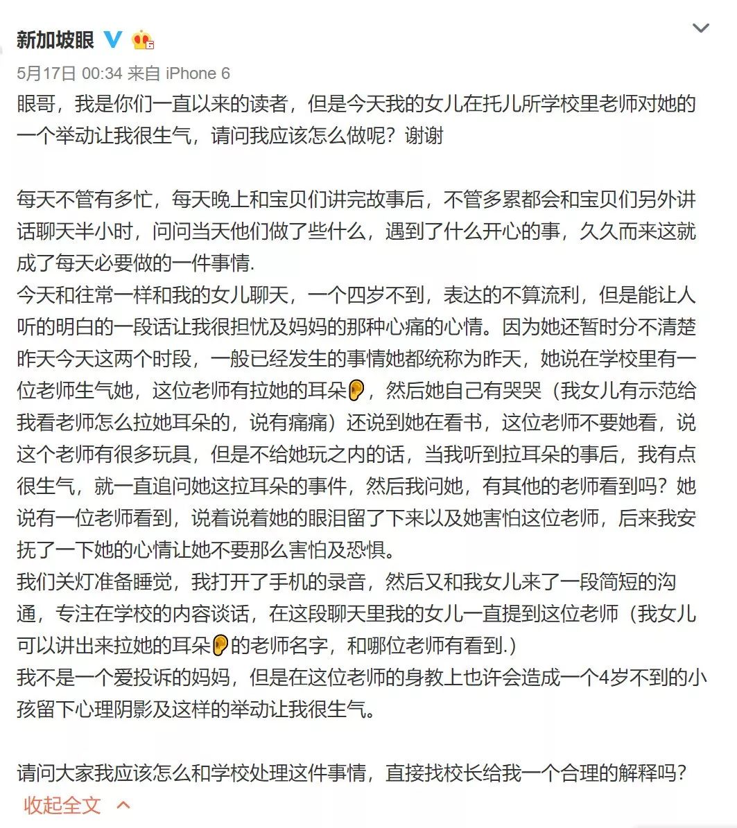 一位網友媽媽,晚上回家和四歲的女兒讀書聊天的時候,得知自己的女兒白天在幼兒園裏被老師拉耳朵。這位媽媽聽後既生氣又傷心,詢問是否要找校方,討個合理的說法?