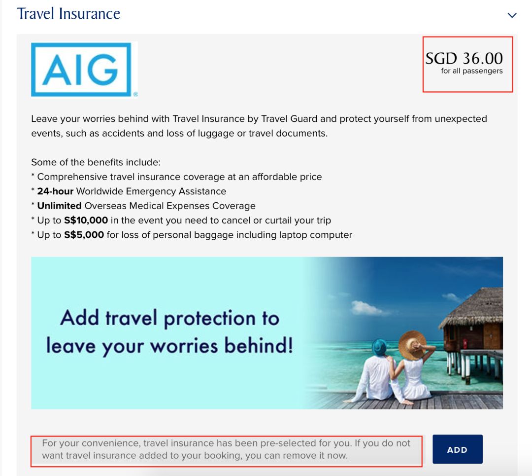 在別的航空公司,保險項目一般是由旅客自行選擇的,系統不會事先自動選擇。