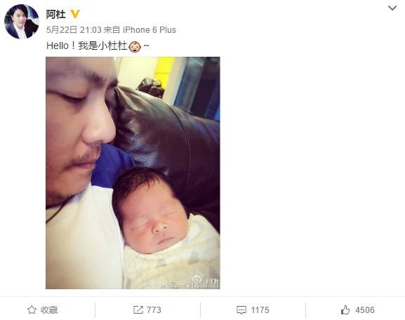 2016年5月22日,阿杜在微博曬出一張自己與初生兒子的合照,並寫道“hello! 我是小杜杜~”
