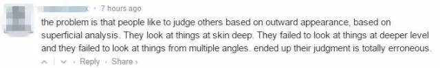 “問題是大家都很喜歡以貌取人。他們看待問題都很膚淺,從不在深層次和不同角度看問題。到最後,他們的判斷往往是錯誤的。”