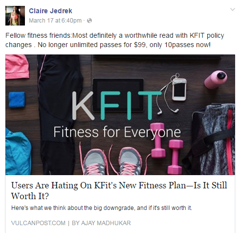 也不忘分享對健身配套的個人意見