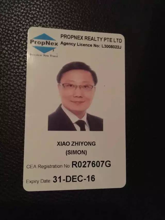 新加坡比較大的房産公司,比方PropNex、ERA或Hutton等的經紀,通常都會穿西裝制服工作。就算因天氣炎熱,大家習慣穿便裝工作,有一樣東西他們必須在工作時隨身攜帶,以證明自己的合格身份,就下面這張工卡。