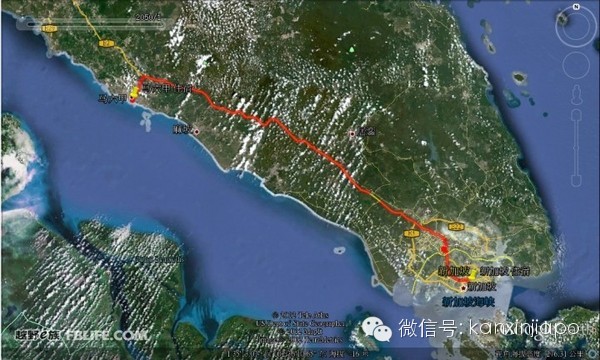 新加坡(大士)出——新山(馬)——馬六甲——亞羅士打(馬)——沙道(泰)——甲米——春蓬——三帕蘭——廊開(泰)——萬象(老)——琅勃拉邦——磨丁(老)——磨憨——昆明