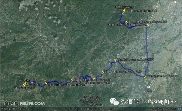 早上9:30從美思樂出發沿 1089 公路轉107公路到芳縣(Fang ) ,沿107公路清道(Chiang Dao) ,過湄登