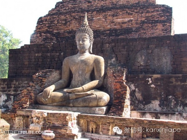 在國外加油我一般到埃索(Esso)或者殼牌(Shell)的加油站。清邁(Chiang Mai)寺廟多,到了素可泰(Sukhothai)就是被毀壞的寺廟多,大多數是被緬甸人燒毀的。燒毀到現在都有200-300年曆史了。選擇有名的Wat Si Chum的大佛和曆史公園的Wat Mahathat。
