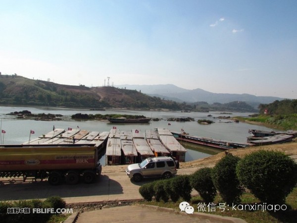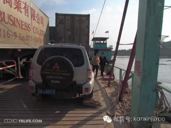 必須先敲章後座渡船到泰國,邊檢敲章在會賽鎮中間,開車過去是單行道(one way)逆行要罰款的(去年從泰國回來,不知道是單行道,罰款老幣20萬)。辦完人的沒有想起要辦車的出關,急急忙忙到車碼頭座渡船,到車碼頭才知道要等4、5輛車一起過,交渡船費(人民幣360),就等吧!無事照幾張照片。看到有邊檢的一個office,想起要辦車出關,上去問說交老幣9萬,沒有想太多就交了,可是也沒有敲章,自己認爲沒事,等車湊齊了上船過泰國了。那知道等我到萬象,才知道沒有出境章不讓入境,不然交罰款老幣30萬。