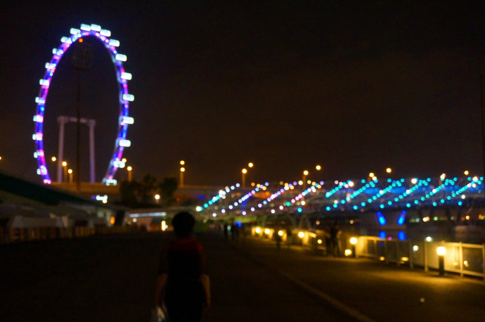 ↓新加坡摩天輪高165米,大約42層樓那麽高,超過了英國倫敦眼130米的高度。據說可在上面眺望到45公裏外的景色,包括印度尼西亞的巴淡島、民丹島,以及馬來西亞的柔佛州。反正我沒看到。