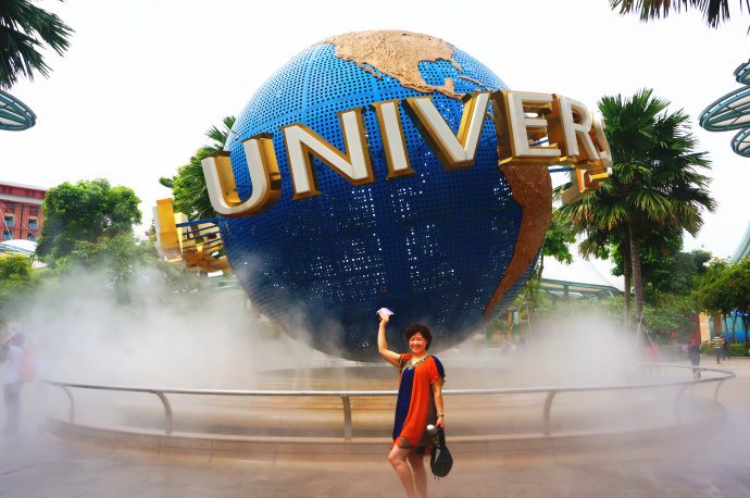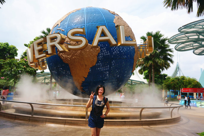 ↓和標志性建築物的合影總歸是要有的。環球影城門口的大地球儀,是世界上唯一一個帶有新加坡國家地圖的環球影城地球儀。