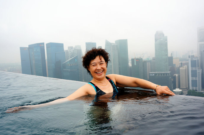 ↓無邊泳池是酒店的最大賣點。57層居高臨下,是不是有種一翻身就墜入萬丈深淵的趕腳。