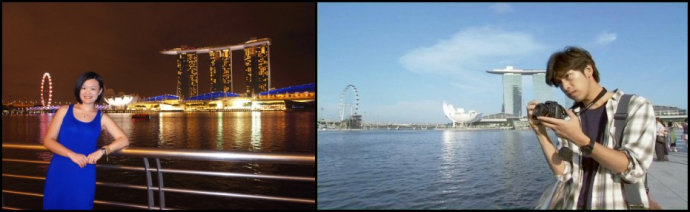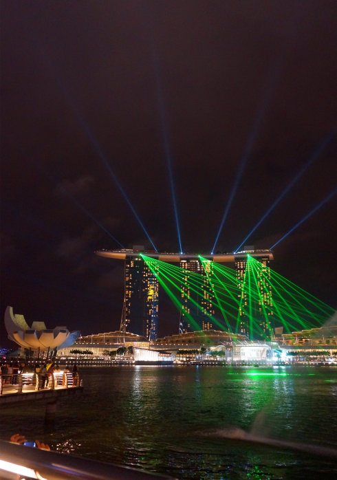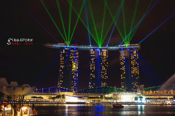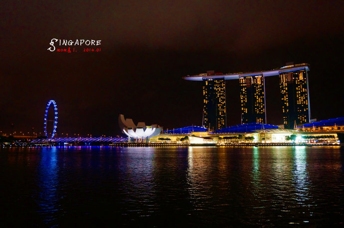 ↑濱海灣,身後的金沙酒店,藝術博物館,摩天輪。