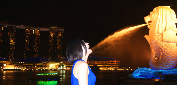 ↓引用當時發朋友圈的一段話吧:“標准遊客照。魚尾獅公園裏,一排排不同膚色的人,各種角度的張大嘴巴各種照。據說這叫接財。”