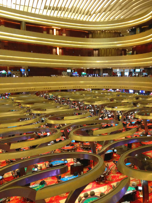 ↓說金沙酒店是諾亞方舟一點不爲過,不光外型像,內部也是一應俱全。三棟客房用的TOWER建立在大型商場之上,商場全部是奢侈品店鋪,大到像迷宮一樣,還有賭場。