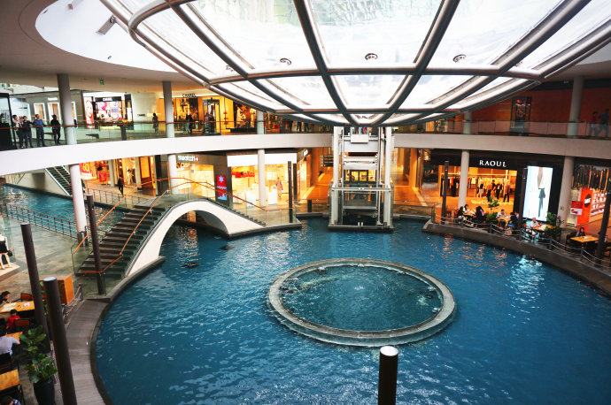 ↓繼續跳回到金沙負一層。居然還整了個威尼斯運河啊!據說這個池子叫接雨池,外面下的雨水集中的灑落到下方池子中央,有美好和豐收的寓意。