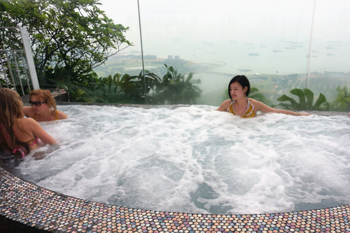 ↓另一側還有熱水按摩池,身後只有一層玻璃保護,哈哈,心肝兒顫啊。