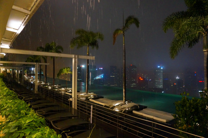 ↓無邊泳池晚上11點關閉,剛剛清場便下起了大雨。東南亞的雨季真是可怕,雨水猛地像往下倒,說來就來,說走就走。