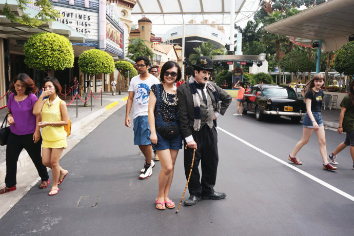 ↓好萊塢區。兩旁都是百老彙風格的經典建築,排列種植了棕榈樹,還有真人扮演的好萊塢電影中的經典人物。