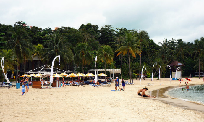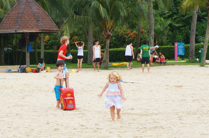 ↓這個海灘上能看到的要麽就是金發碧眼的老外,要麽就是新加坡本地人,徹底度假的方式,曬太陽打排球。偶爾經過幾個扛著相機凹完造型就閃人的中國人,哈哈,我們也拍完了,閃人。
