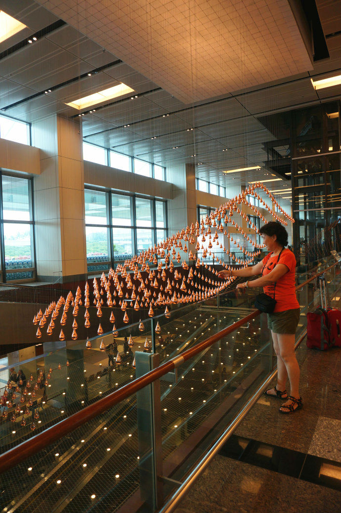 ↓樟宜機場。一組被透明魚線吊著的小球球,變換著各自的高度組成不同的形狀,挺好玩的。