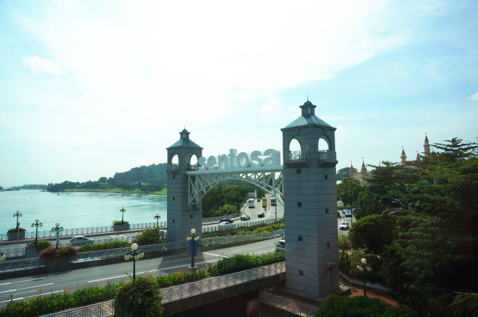 ↓聖淘沙的大門。兩個島之間有路橋連接,駕車和步行均可抵達。