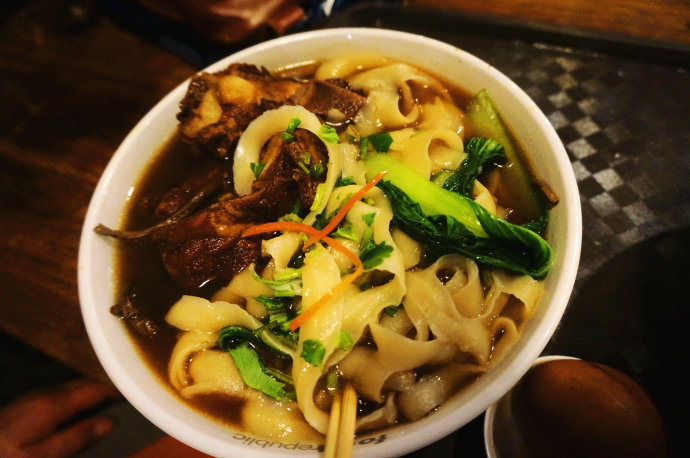 ↓返回大食代的時候都快9點了,大概是長時間沒有這麽耗體力的運動過了,腰和腿疼到不行,湊合要了碗山西刀削面解決了晚餐。是的,山西刀削面。。。千裏迢迢跑到赤道邊吃了碗山西刀削面……