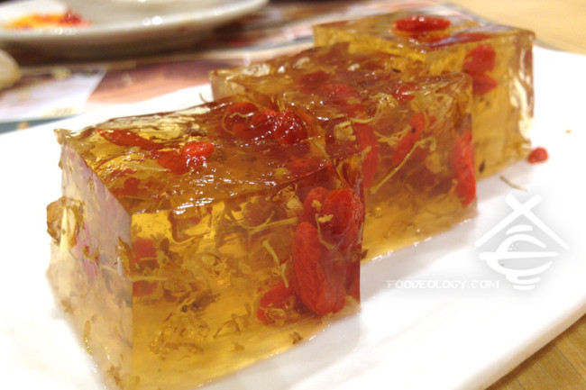 從小吃桂花糖長大,爲食主義對桂花味食物的要求非常苛刻,它必須保留桂花的清香,但也不可以喧賓奪主。這個桂花糕並不接近于我想象的樣子,杞子與糖份過多,整個口感太甜,蓋過了桂花的香味,更像果凍狀的甜湯。
