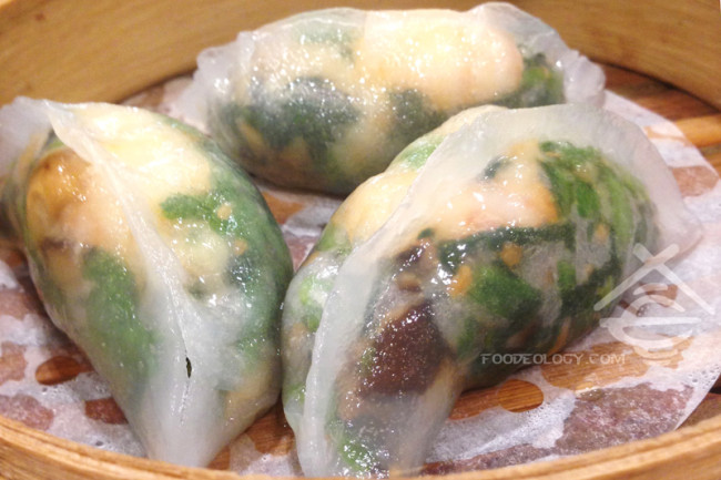 不論裏面的餡料是什麽,添好運的腸粉做工讓我不免失望一陣。不夠順滑,不夠細膩,作爲添好運的明星産品之一,它還真是遜色于其它衆多家點心餐廳(除非那個豬肝腸粉的粉皮與其它腸粉的不一樣)。而且添好運的蝦好小,這事在之後的蝦餃裏也得到印證,所以咬在口中粉多蝦少,感覺平平。