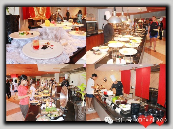 不知不覺時間到了中午,一上午的興奮以後,肚子已經餓到極點,我們旋風一樣的沖向主餐廳,這是一個巨大的國際自助餐廳,供應世界最有代表性的幾類食物,N多菜肴,因爲源于法國,還有廚師現場烹制精美絕倫的法國菜,特點是大大一個盤子,小小一塊食物,哈哈。