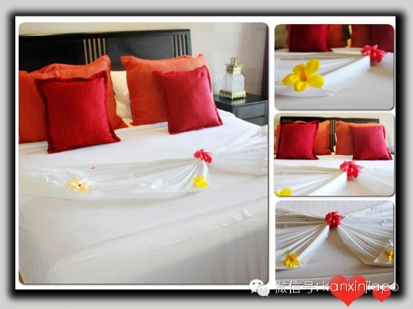 接下來,印尼G.O帶著我們去了房間,整個度假村由若幹個三層小樓組成,這些小樓通常有12個房間,依海邊的山勢而建,隱藏在濃密的熱帶雨林裏,我們住的這一棟,面向大海,距離海灘只有咫尺,因爲提前說了是慶祝結婚周年,所以他們特別布置了房間,充滿熱帶風情的房間,有一個小小的陽台,站在那裏,美到無法形容的海灘,似乎觸手可得。