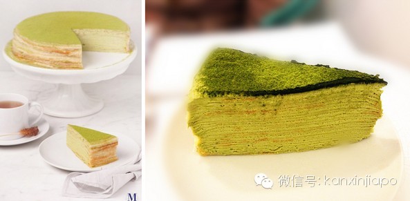 原方如果攤得薄可以做一個10寸的,或者6寸8寸各一個。想做抹茶味兒的話,只要把薄餅面糊裏的面粉加入10克抹茶粉,做奶油餡的蛋糊裏加3克抹茶粉,最後組裝完畢撒抹茶粉裝飾即可。做這玩意兒確實很費事,可是樂趣也就在此。喜歡變化的人,懂舉一反三的人,比如美女我,自然知道可以變化出多種口味。