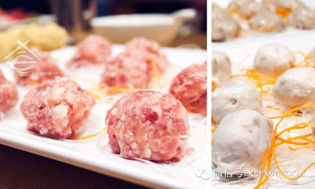 翡翠火鍋酒家的另一個亮點是它的大丸子。從鮮蝦丸、墨魚丸、秋刀魚丸到豬肉丸,都是手工制作,吃起來真材實料,完全沒有面面的感覺。鮮蝦丸和墨魚丸QQ有彈性,秋刀魚丸帶有魚肉的細膩與鮮美,豬肉丸裏加了馬蹄嚼起來口感清脆。爲食主義在那天吃完火鍋後隔了兩天不小心又吃了翡翠小廚的火鍋,頓時覺得那些丸子的質量完全不能與火鍋酒家的同日而語。手打的誠意與味道,只有在火鍋酒家才嘗得到。